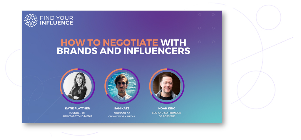 In this episode of ‘The FYI’, moderator, Chelsea Goodson is joined by Sam Katz, founder of Crowdword Media, Katie Plattner, founder of ABOVE&BEYOND media and Noah King, CEO and Co-founder of Popsixle. We dive into “How to negotiate with brands and influencers”, what would make that conversation better, how to pitch brands/creators.
